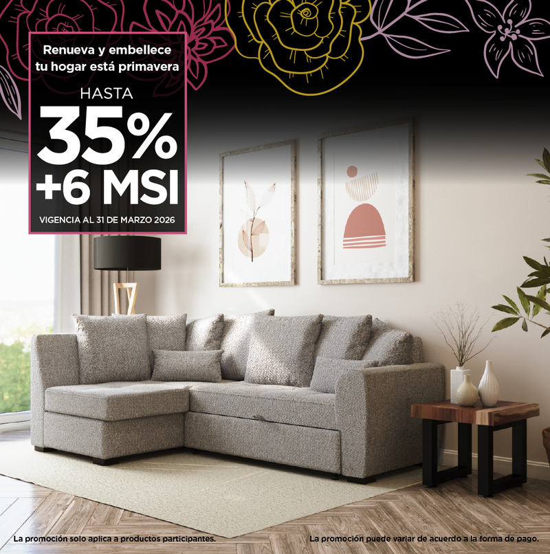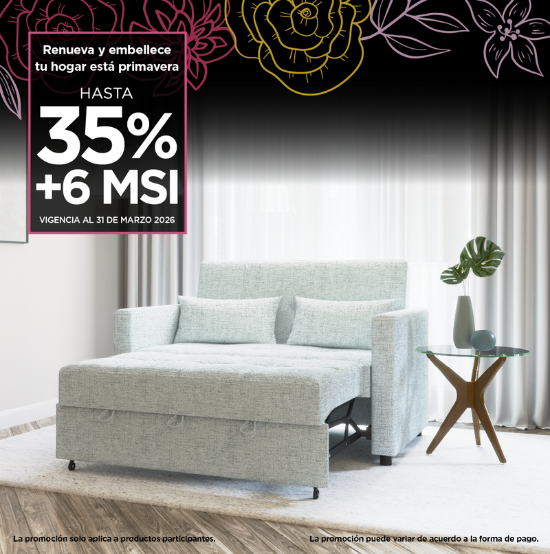 Ver medidas: Ver material: Realizado en madera de abeto, tapizado en tela 100% poliester Ver recomendación para el cuidado: Limpiar suavement...